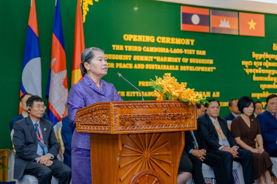 Bà Samdech Kittisangha Bindit Men Sam An, Thành viên Hội đồng Cơ mật của Quốc vương Campuchia, đã có bài phát biểu chào mừng và chỉ đạo hội nghị.