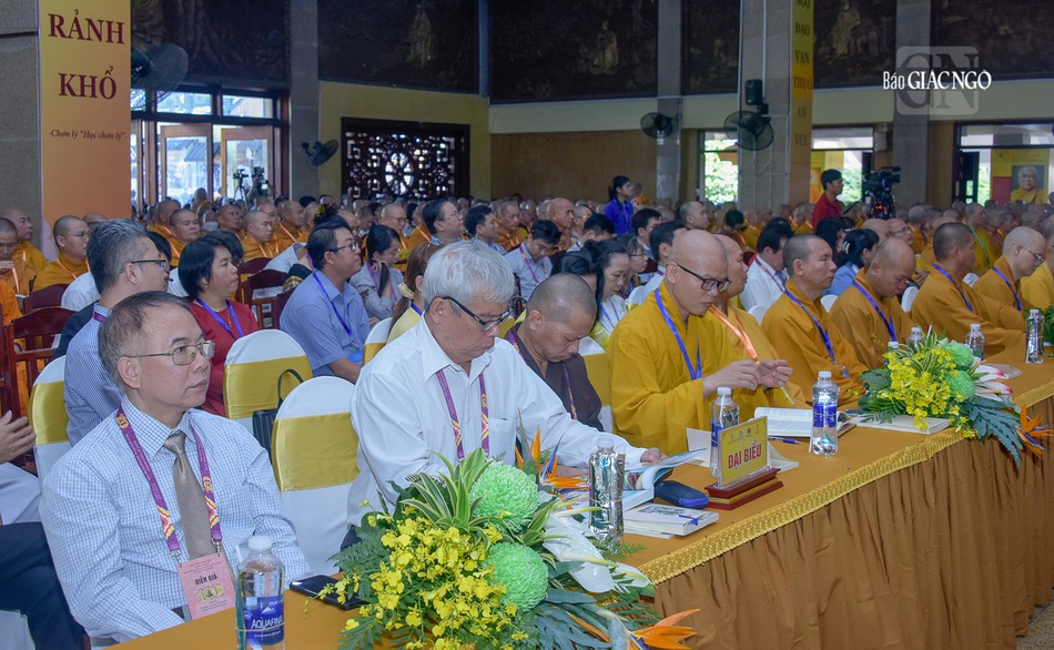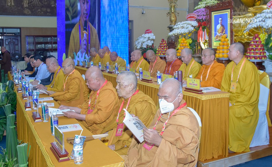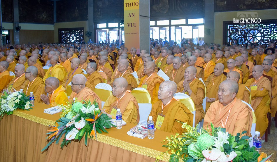 Đại diện 4 đơn vị tổ chức hội thảo gồm: Hòa thượng Thích Giác Pháp, Ủy viên Hội đồng Trị sự, Phó ban Nghi lễ T.Ư, Phó ban Thường trực Giáo phẩm Hệ phái Khất sĩ; Thượng tọa Thích Tâm Đức, Ủy viên Thường trực Hội đồng Trị sự, Phó Viện trưởng Thường trực Viện nghiên cứu Phật học VN; PGS.TS Chu Văn Tuấn, Viện trưởng Viện Nghiên cứu Tôn giáo thuộc Viện Hàn lâm Khoa học Xã hội VN; ông Lê Hoàng Dũng, Phó Hiệu trưởng Trường Đại học Khoa học Xã hội và Nhân văn thuộc Đại học Quốc gia TP.HCM; cùng với hơn 2.000 khách mời là Tăng Ni, học giả, Phật tử.