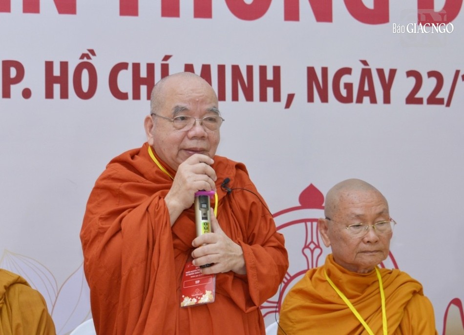 "Thực trạng hướng dẫn thiền tại các tu viện, các trung tâm thiền tập hiện nay vẫn chưa có sự chú trọng việc thực tập đến mọi người và lấy chính đời sống của họ làm đối tượng soi sáng. Vì vậy, mỗi người cố gắng tự đưa thiền vào đời sống chính mình và tự soi sáng chính mình về bốn pháp 'thân, thọ, tâm và pháp'", Trưởng lão Hòa thượng Phó Pháp chủ nói.