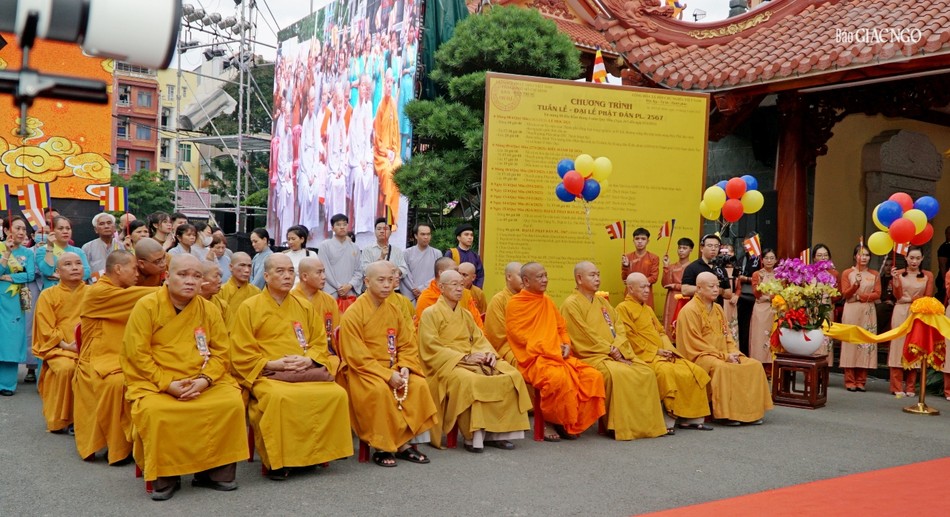 Chứng minh, tham dự có sự hiện diện Hòa thượng Thích Lệ Trang, Ủy viên Thường trực Hội đồng Trị sự, Trưởng ban Trị sự GHPGVN TP.HCM, Trưởng ban Tổ chức Đại lễ Phật đản Phật lịch 2567, cùng chư tôn đức Ban Thường trực GHPGVN TP.HCM, các ban chuyên môn, Ban Trị sự các quận huyện, TP.Thủ Đức, Phân ban Ni giới TP, Tăng Ni các tự viện và đông đảo Phật tử.
