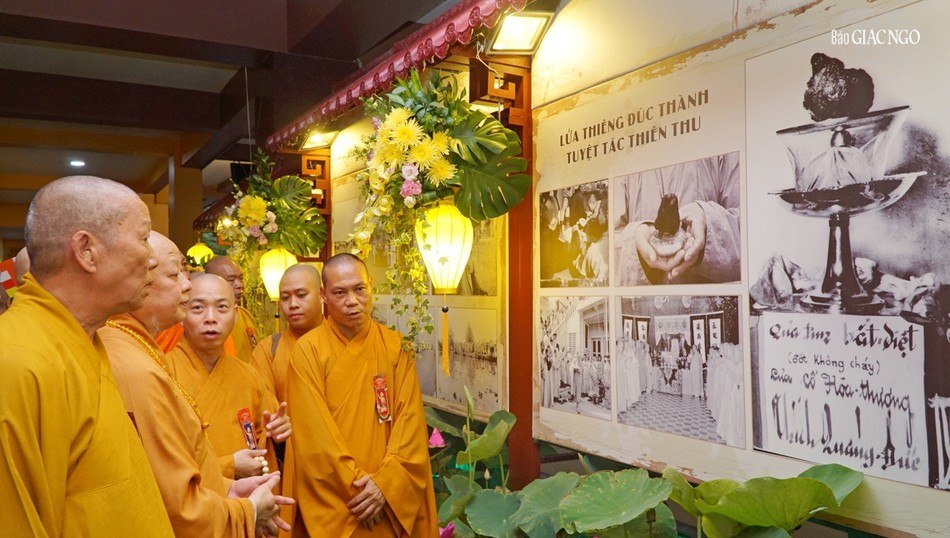 Triển lãm “Lửa thiêng rực sáng sử vàng” trưng bày một số hình ảnh, tư liệu về cuộc đời và đạo nghiệp của Bồ-tát Thích Quảng Đức, những di vật của ngài và chư Thánh tử đạo cùng chư vị tiền bối hữu công trong pháp nạn năm 1963, nhằm kính mừng Đại lễ Phật đản Phật lịch 2567, tưởng niệm 60 năm ngày Bồ-tát Thích Quảng Đức vị pháp thiêu thân.