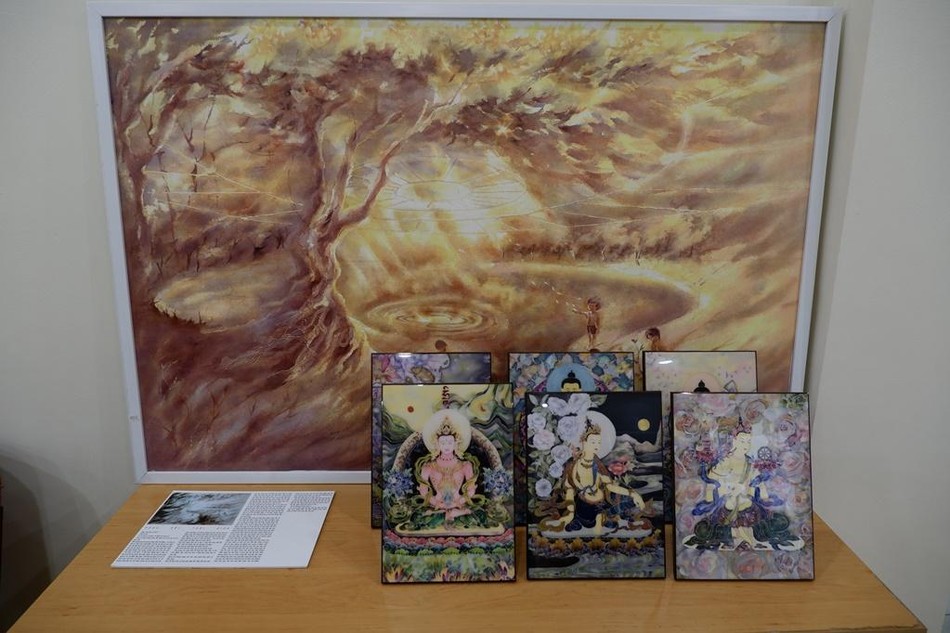 Triển lãm do Báo Giác Ngộ phối hợp với hai họa sĩ tổ chức, bao gồm 23 tác phẩm, trong đó có tranh màu nước trên giấy chủ đề Đạo của Tùng Linh và tranh Phật trên lụa của Bảo Trân. Tranh của Tùng Linh minh họa cho các triết lý Phật pháp, còn tác phẩm của Bảo Trân họa các vị Phật và Bồ-tát theo truyền thống Kim Cương thừa.