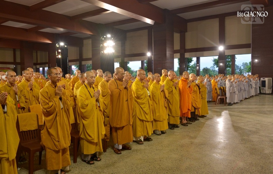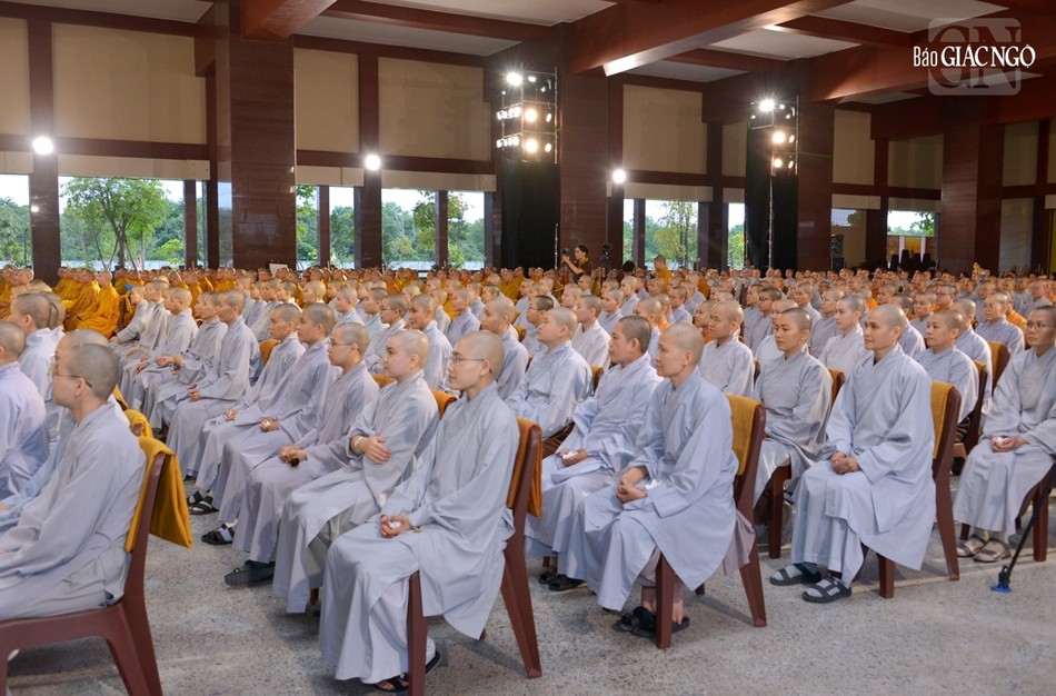 Tham dự khai mạc có các Phó Viện trưởng cùng lãnh đạo các khoa, giảng viên đang tham dự khóa huân tu và hơn 1.000 Tăng, Ni sinh tu học nội trú và các Phật tử