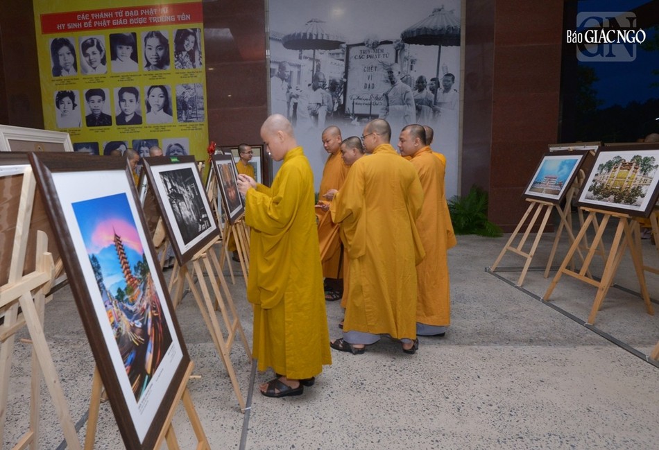 Theo đó, buổi triển lãm có gần 100 hiện vật ấn phẩm báo chí, tư liệu hình ảnh liên quan đến cuộc vận động của Phật giáo năm 1963 đòi chính quyền Ngô Đình Diệm thực thi chính sách bình đẳng tôn giáo và đỉnh cao là sự kiện vị pháp thiêu thân của Bồ-tát Thích Quảng Đức tại ngã tư Phan Đình Phùng - Lê Văn Duyệt (nay là Nguyễn Đình Chiểu - Cách Mạng Tháng Tám); các bức ảnh chụp, tranh vẽ sơn dầu do các nghệ nhân, nhiếp ảnh gia thực hiện được trưng bày tại tiền sảnh của đại giảng đường Minh Châu trong thời gian diễn ra Hội thảo.