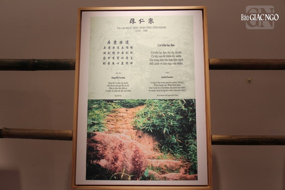 Trong không gian triển lãm tuyển chọn thơ thiền Việt Nam thời Lý - Trần và thời Lê - Nguyễn qua bộ sách độc bản được ấn loát trên giấy dó khổ 8 1x 111 cm cùng 15 trang thơ trong sách lồng khung 60 x 80 cm được thể hiện bằng ba ngôn ngữ (Hán - Việt - Anh) do nhà thơ Nguyễn Duy hợp tác với hai nhà thơ Nguyễn Bá Chung và Kenvin Bowen biên soạn và biên dịch. Ngoài ra, còn có hơn 30 bức ảnh bản và tranh trúc chỉ các bài thơ thiền được trưng bày trong không gian triển lãm.
