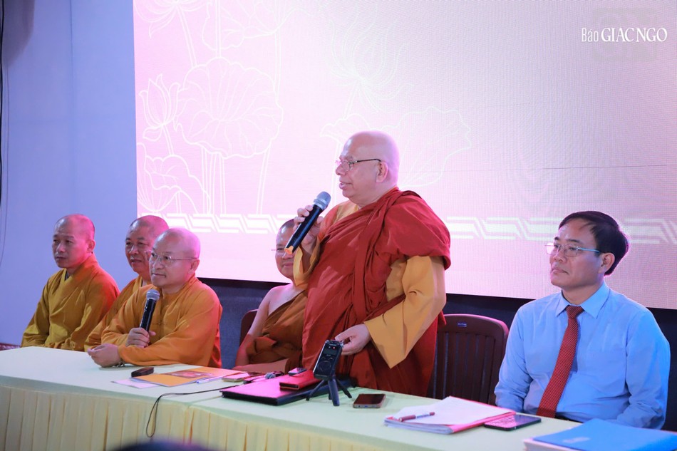 Mở đầu buổi họp báo, Thượng tọa Thích Đức Thiện có lời chào mừng các biên tập viên, phóng viên, đại diện các cơ quan thông tấn báo chí đã dành thời gian đến tham dự buổi họp báo cung cấp thông tin về Đại lễ Vesak Liên Hiệp Quốc 2025 tại Việt Nam.