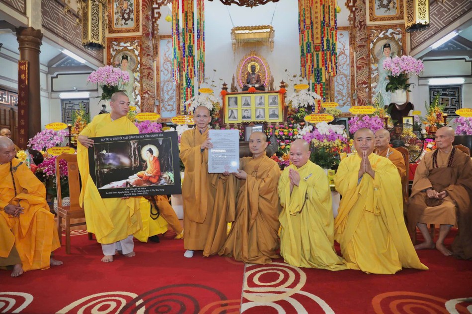 Dịp này, Ban Trị sự GHPGVN tỉnh Khánh Hòa công bố quyết định bổ nhiệm trụ trì chùa Long Sơn. Theo đó Thượng tọa Thích Thiện Phước, Phó Trưởng ban kiêm Chánh Thư ký Ban Trị sự tỉnh thay mặt Thường trực Ban Trị sự tuyên đọc công bố quyết định bổ nhiệm Đại đức Thích Nguyên Đăng đảm nhiệm trụ trì chùa Long Sơn; suy tôn Hòa thượng Thích Minh Thông làm viện chủ.