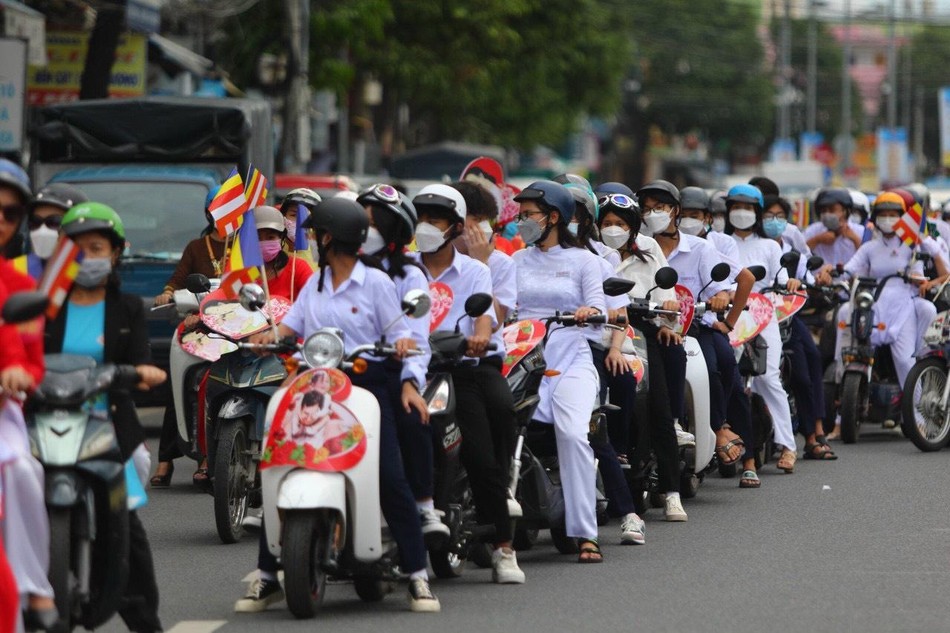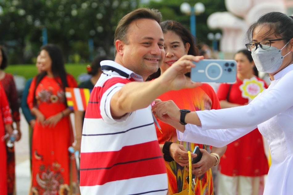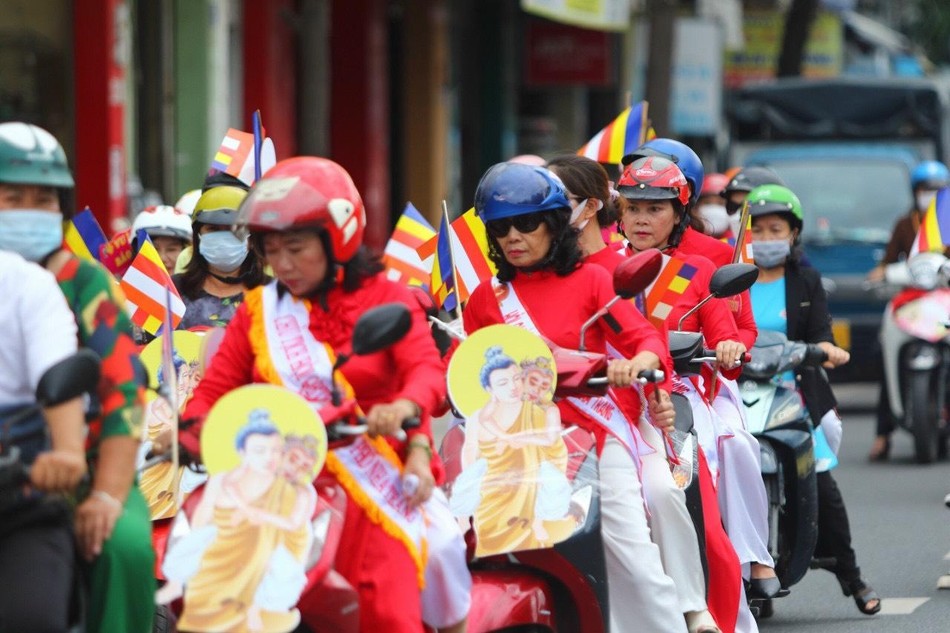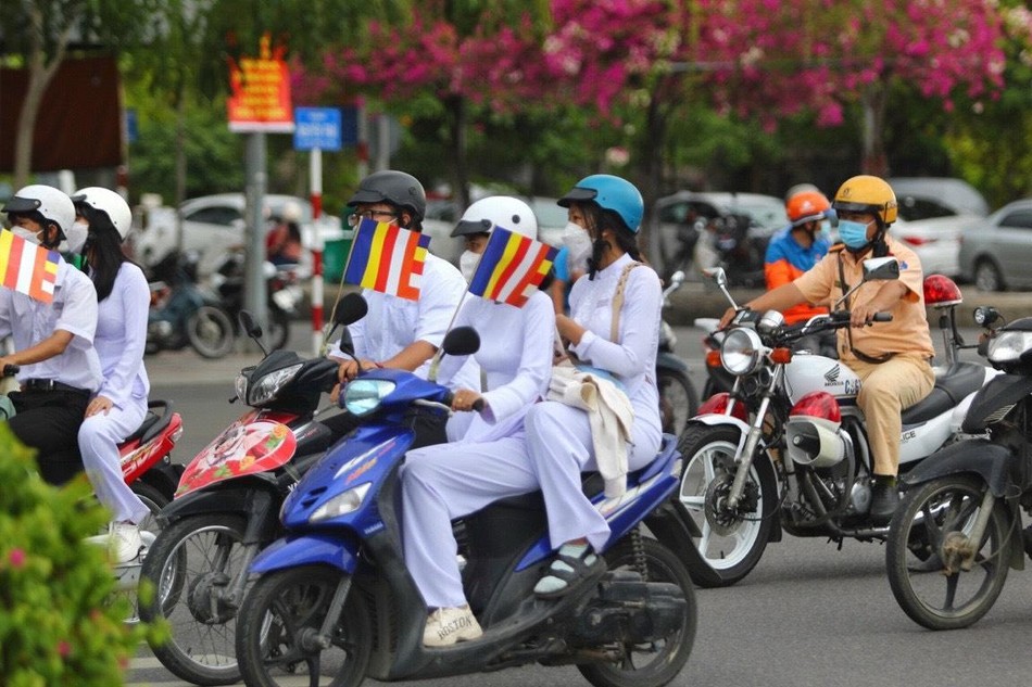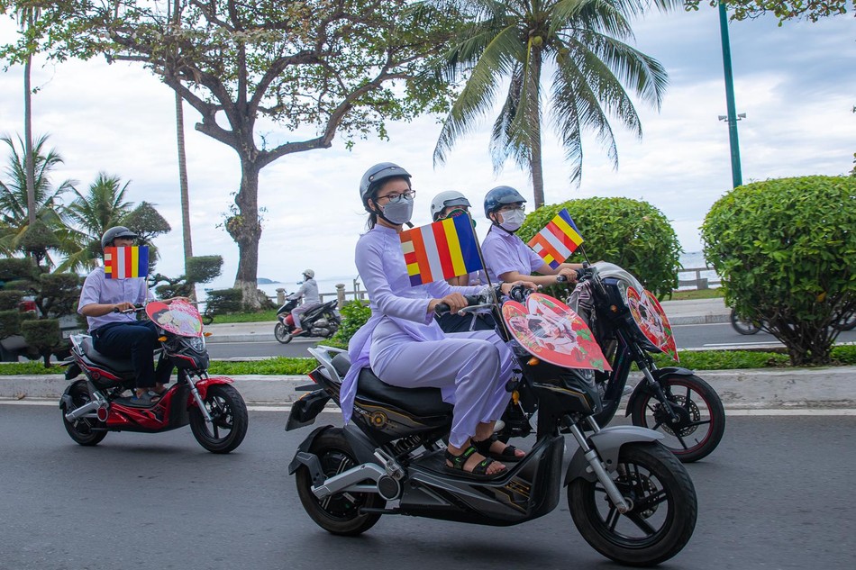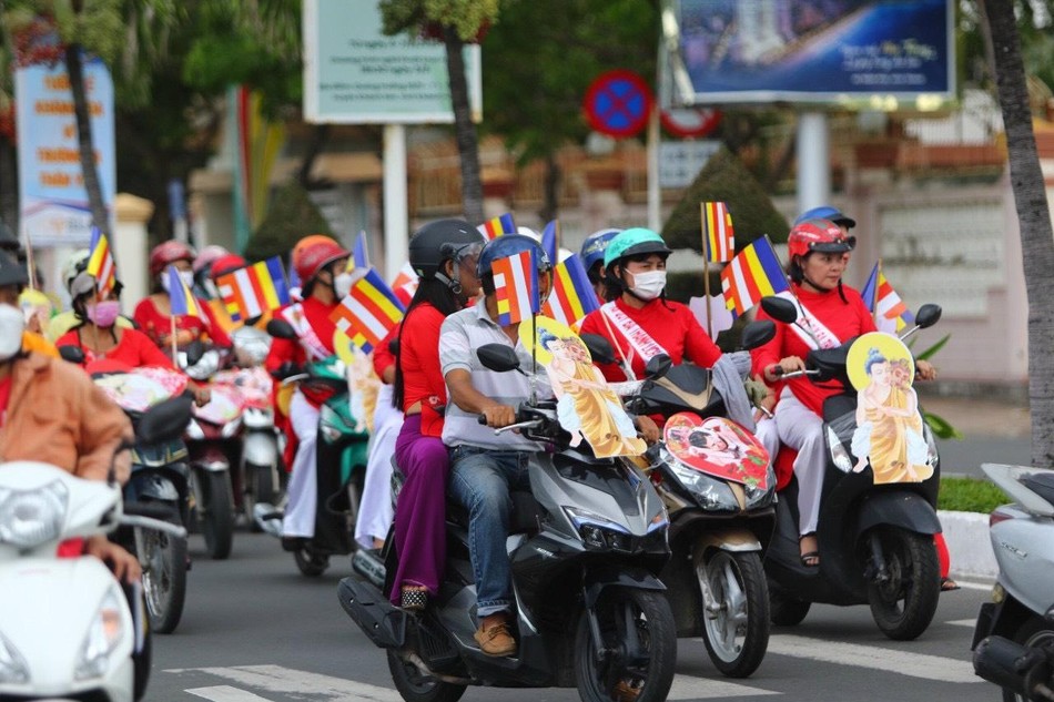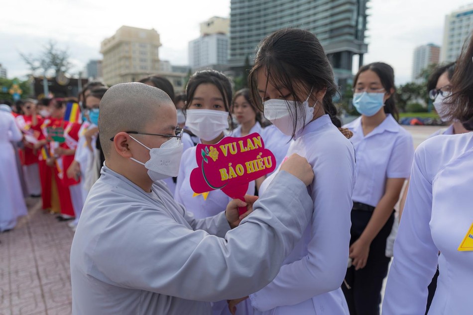 Những hình ảnh của đấng sinh thành, những lá cờ Phật giáo tươi thắm, những đoá hồng trên tay đã làm nên một chương trình hân hoan không khí đón mừng Đại lễ Vu lan thắng hội ở một thành phố du lịch biển được truyền thông rộng rãi.