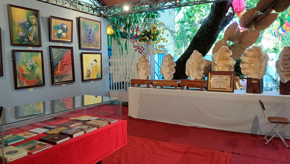 Hòa thượng Thích Quảng Thiện, Hòa thượng Thích Nguyên Quang, đồng Thành viên Hội đồng Chứng minh, Chứng minh Ban Trị sự GHPGVN tỉnh Khánh Hòa; Hòa thượng Thích Minh Thông, Ủy viên Hội đồng Trị sự, Trưởng ban Trị sự GHPGVN tỉnh đến chứng minh và cắt băng khai mạc triển lãm.