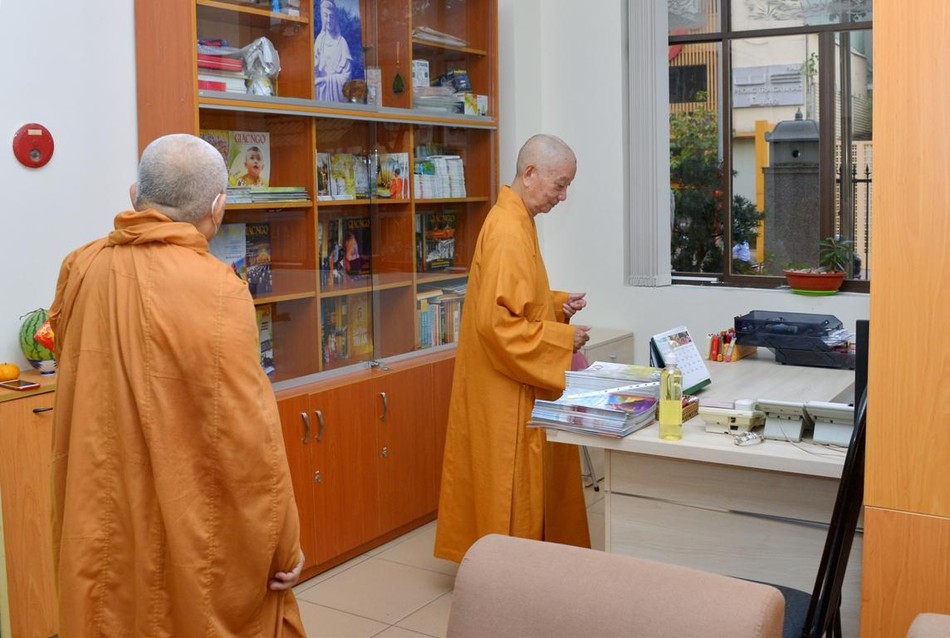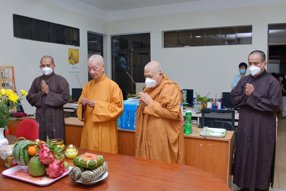 Thượng tọa Thích Tâm Hải, Phó Tổng Biên tập kiêm Thư ký tòa soạn đại diện tác bạch khánh tuế đến Trưởng lão Hòa thượng Thích Trí Quảng, Quyền Pháp chủ GHPGVN, Trưởng ban Trị sự GHPGVN TP.HCM, Tổng Biên tập; Hòa thượng Thích Giác Toàn, Phó Chủ tịch Hội đồng Trị sự, Viện trưởng Viện Nghiên cứu Phật học VN, Phó Tổng Biên tập Thường trực.