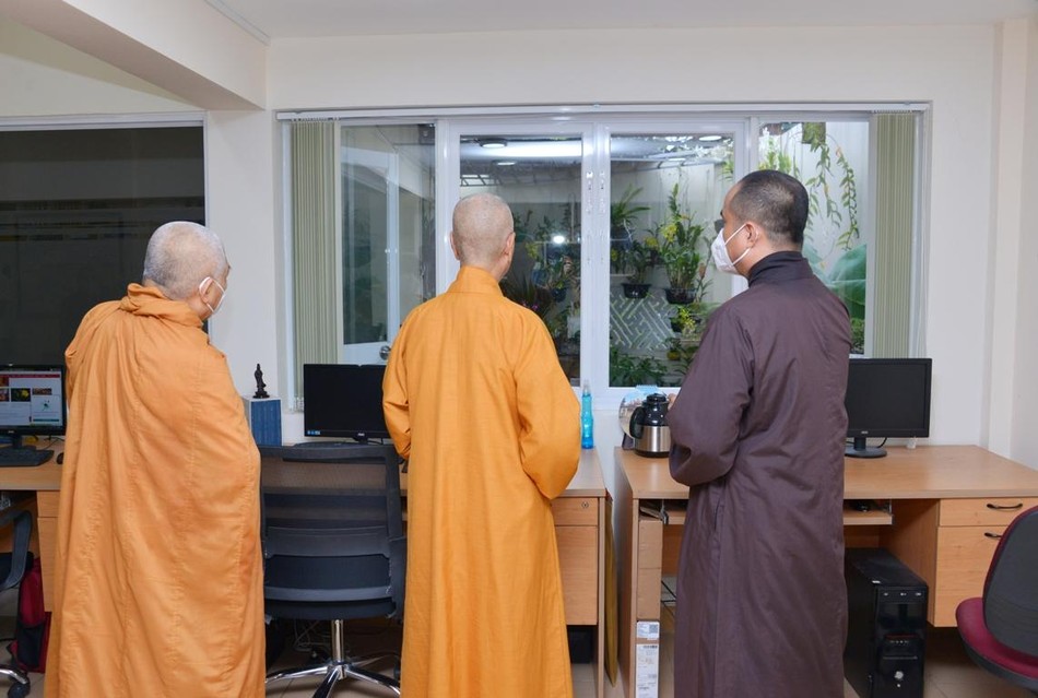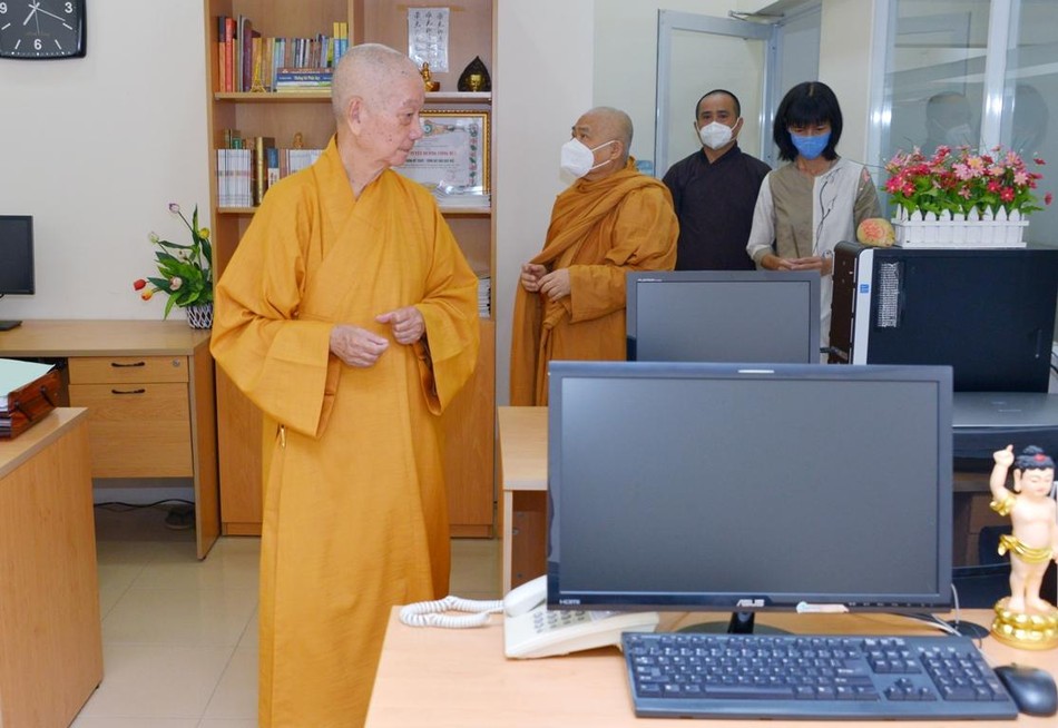 Chư tôn đức, cán bộ, nhân viên, phóng viên báo lắng nghe lời huấn thị của Trưởng lão Hòa thượng Thích Trí Quảng  |