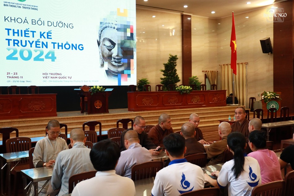 Chia sẻ với Báo Giác Ngộ, Đại đức Thích Nguyện Truyền, Phó Thư ký Ban Thông tin - Truyền thông GHPGVN TP.HCM, Thư ký Ban Tổ chức cho biết một trong những điều kiện để tham dự Khóa bồi dưỡng thiết kế truyền thông năm 2024 là học viên phải có máy tính (laptop) đã cài đặt một trong các phần mềm thiết kế như: Photoshop, Illustrator, Corel, Canva... mà cá nhân thường sử dụng, nên Ban Tổ chức đã kéo điện dùng đến tất cả các bàn học để thuận tiện và ổn định nguồn pin đủ cho học viên làm bài tập.