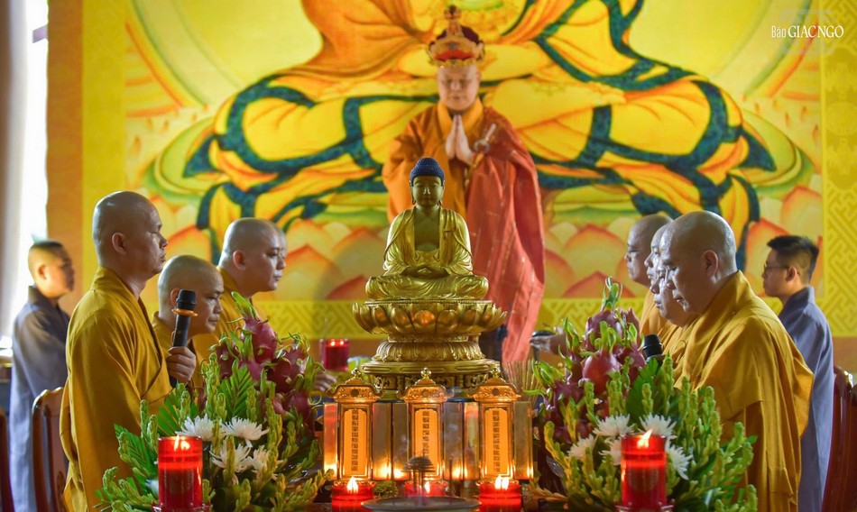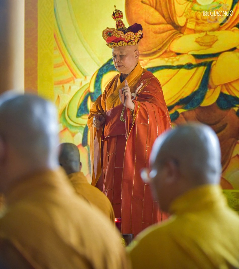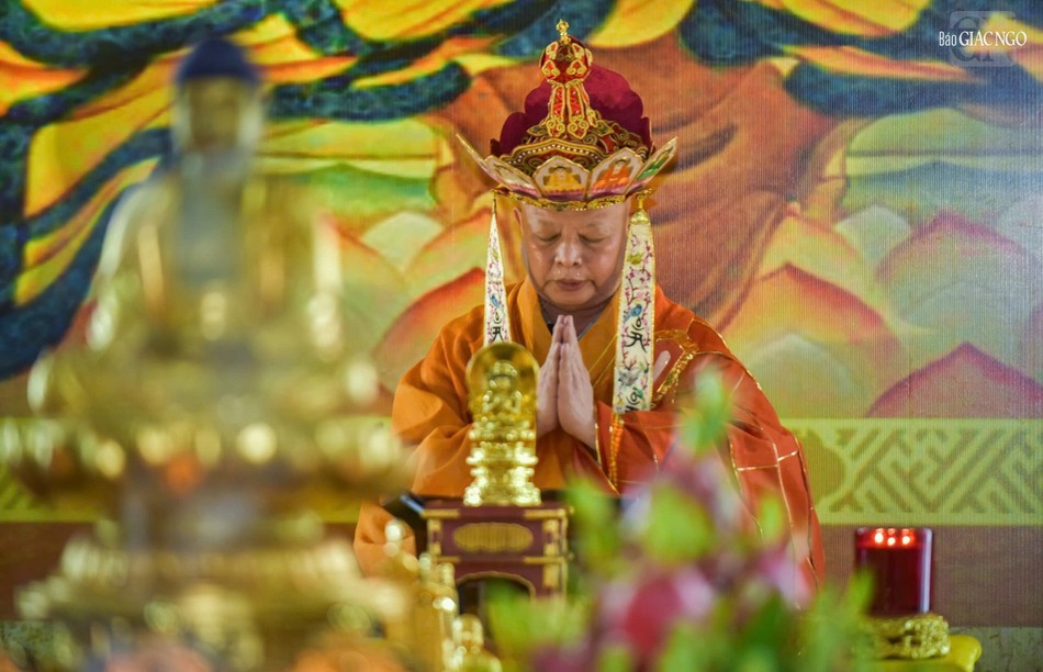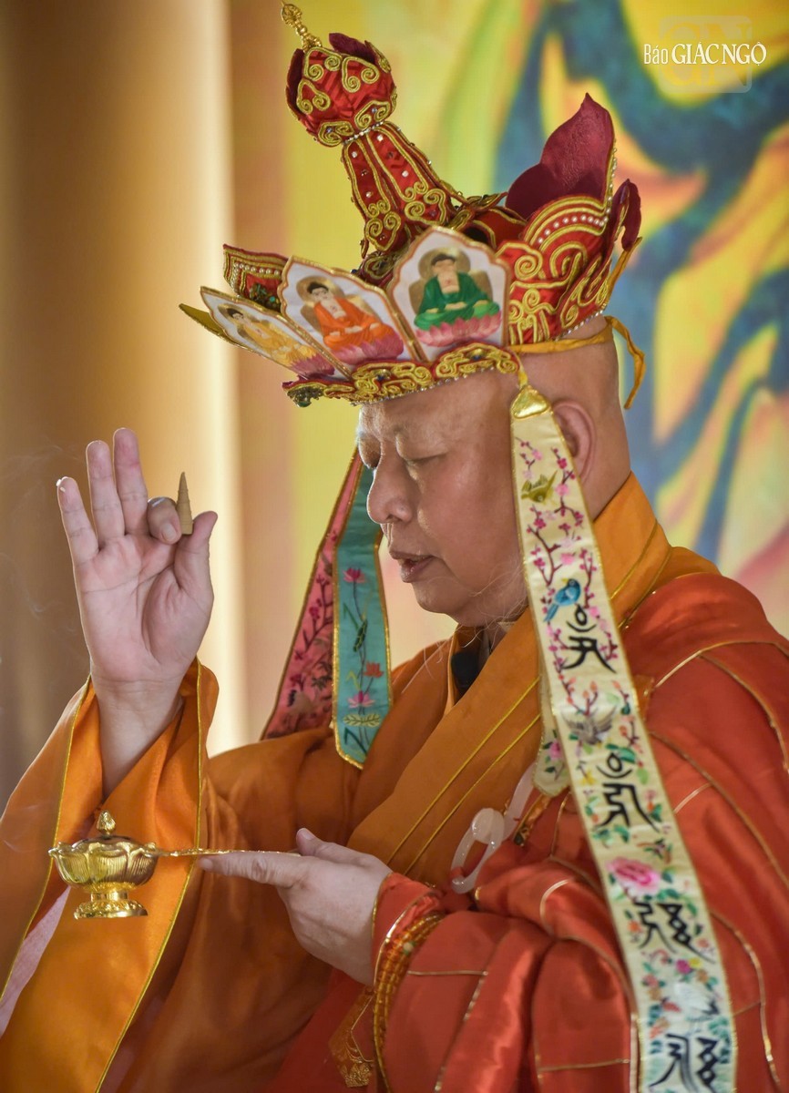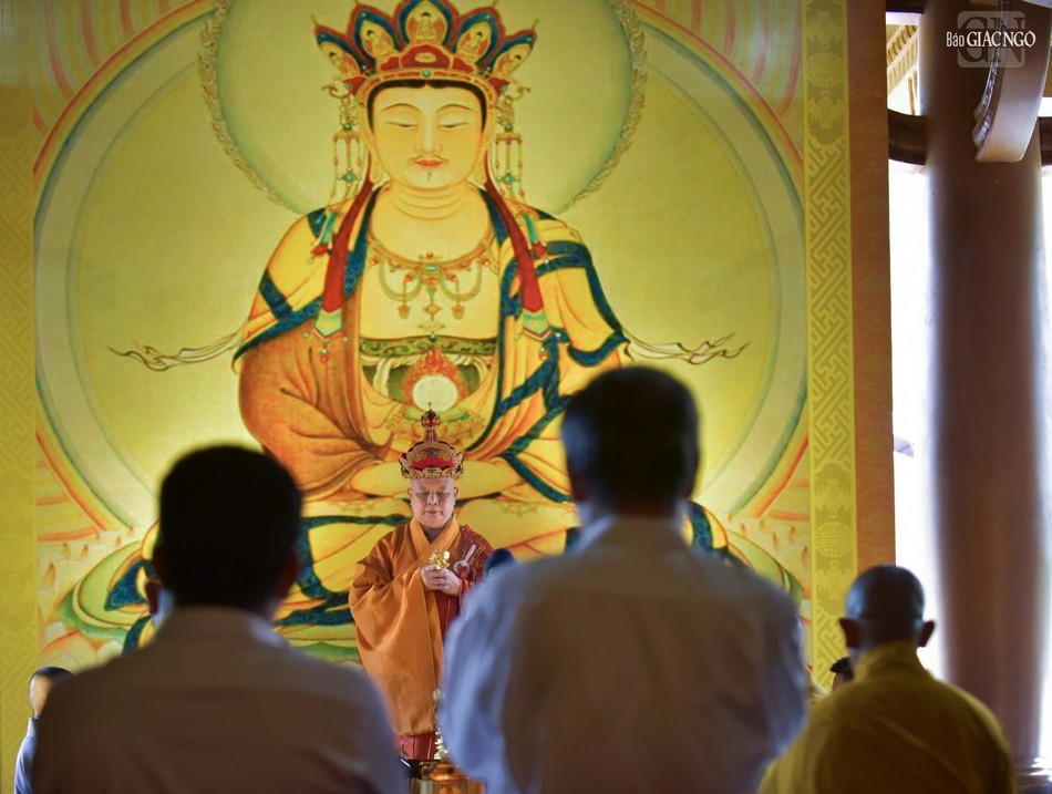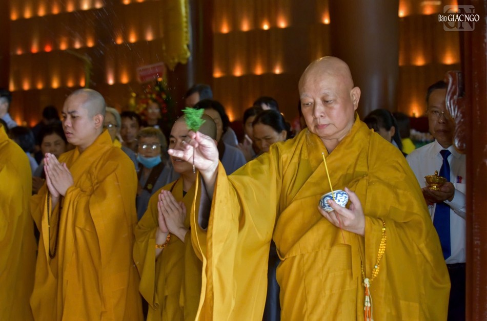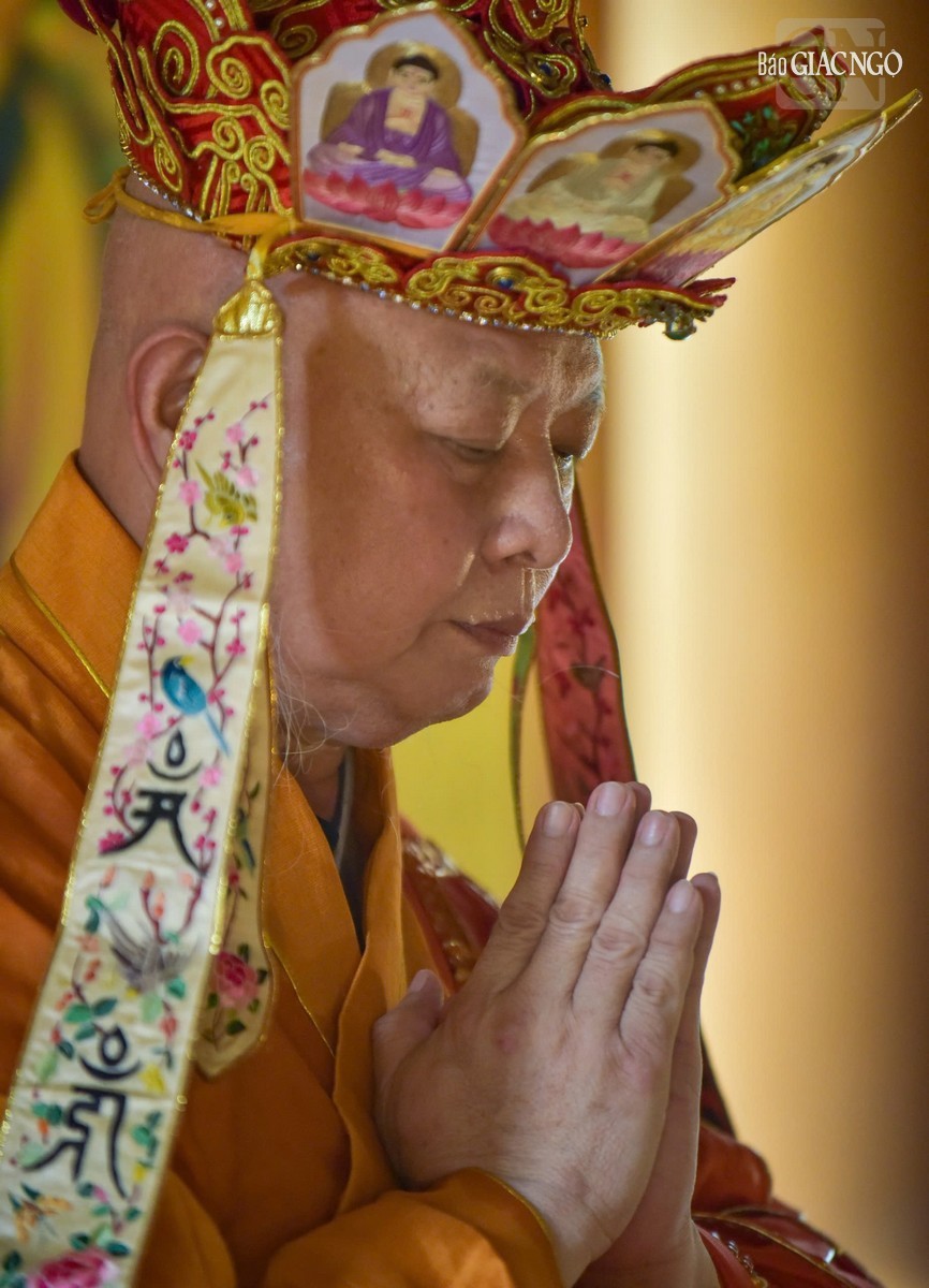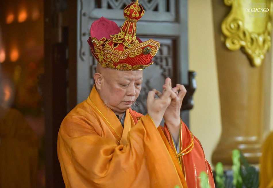Hòa thượng Thích Lệ Trang, Trưởng ban Nghi lễ T.Ư, Trưởng ban Trị sự GHPGVN TP.HCM chủ trì pháp sự, cùng chư tôn đức Ban Trị sự GHPGVN TP.HCM thực hiện khoa cam lồ thí thực theo nghi thức truyền thống.