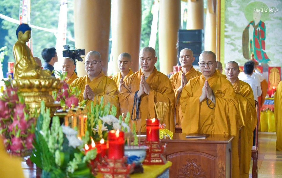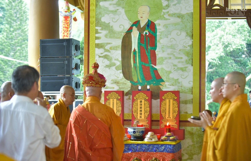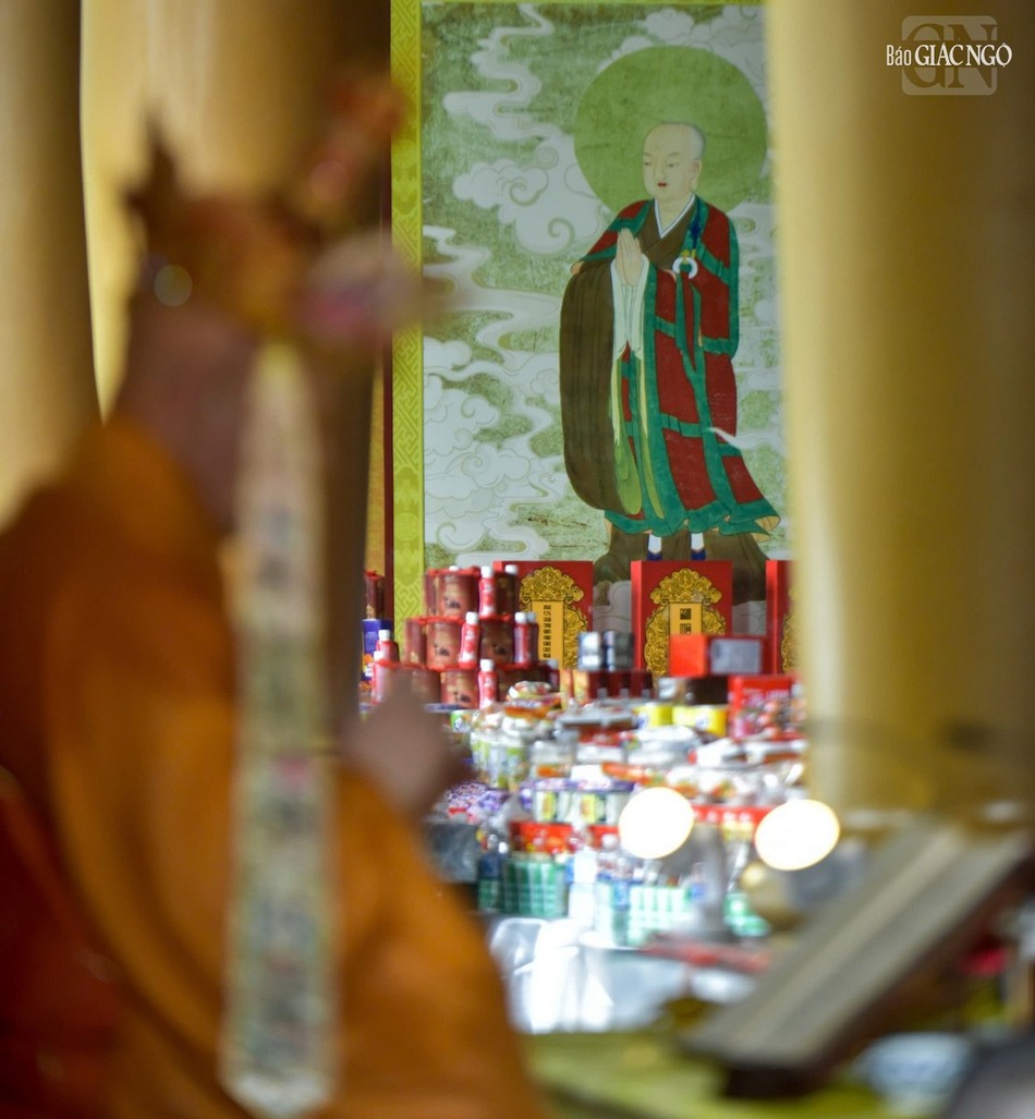 Hòa thượng sám chủ đăng đàn thực hành phổ thí hộc thực, hồi hướng siêu tiến chư anh linh tiền nhân vì nước quên mình, đồng bào đã hy sinh vì Tổ quốc, cầu nguyện âm siêu dương thái, đất nước thịnh trị và phát triển.