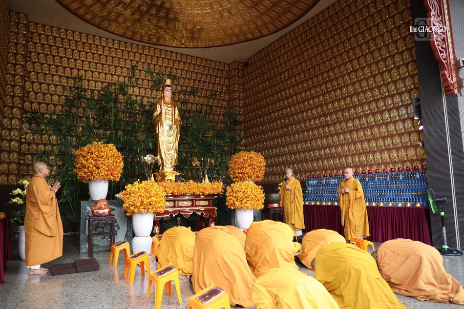 Trong không khí trang nghiêm, Thượng tọa Thích Quảng Chơn duy-na, cung tuyên pháp ngữ và xưng tán 12 đại nguyện của Bồ-tát Quán Thế Âm; sau mỗi đại nguyện, đại chúng nhất tâm đồng niệm danh hiệu và chí thành đảnh lễ Ngài.