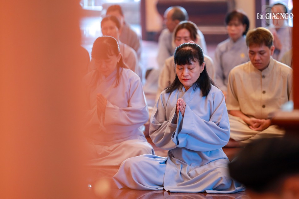 Đúng 7 giờ sáng, Thượng tọa Thích Thanh Lợi, Phó Trưởng ban kiêm Chánh Thư ký Ban Nghi lễ T.Ư đương vi chủ sám; cùng chư tôn đức Ban Kinh sư Phật giáo miền Bắc đã quang lâm Phật điện cử hành khóa lễ.
