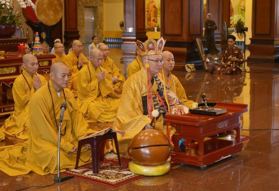 Thượng tọa Thích Thanh Lợi cùng chư tôn đức Ban Kinh sư cử hành khóa lễ theo truyền thống Phật giáo miền Bắc |