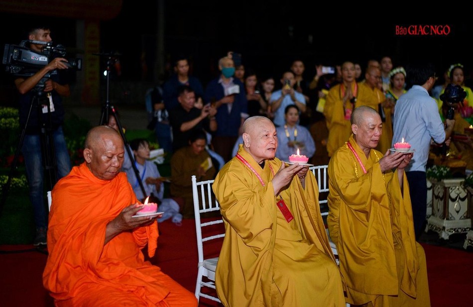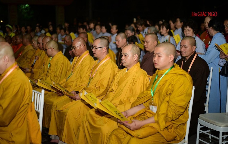 Sau phần phát biểu khai mạc, chư tôn đức đã đối trước trụ kinh Chuyển pháp luân, cùng thắp nến đồng phúng tụng bài kinh này để cầu nguyện đạo pháp trường tồn, chúng sanh an lạc.