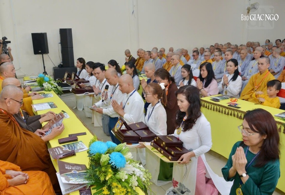 Nhân dịp này, chư vị giáo phẩm cũng đã trao Bằng tuyên dương công đức đến các học viên có những đóng góp cho sự phát triển chung của khoa Phật học từ xa.