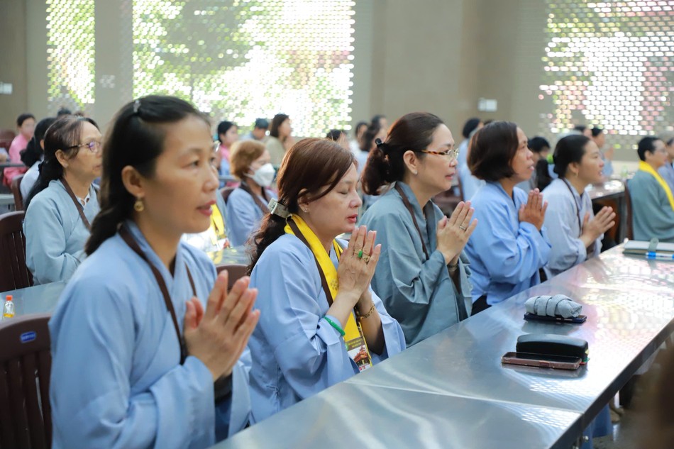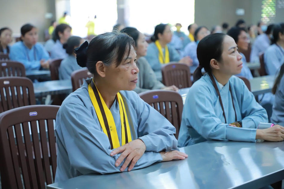 Sau thời khóa niệm Phật do Đại đức Thích Thiện Lâm, Phó Thư ký Ban Hoằng pháp GHPGVN TP.HCM hướng dẫn, đạo tràng được lắng nghe Thượng tọa Thích Trung San, Ủy viên Ban Hoằng pháp Phật giáo TP.HCM, Hiệu trưởng Trường trung cấp Phật học tỉnh Bến Tre; Thượng tọa Thích Minh Nhựt, Phó Trưởng ban kiêm Chánh Thư ký Ban Hoằng pháp GHPGVN TP.HCM chia sẻ pháp thoại với chủ đề: “Học cách vượt qua nghịch cảnh theo quan điểm Phật pháp”.
