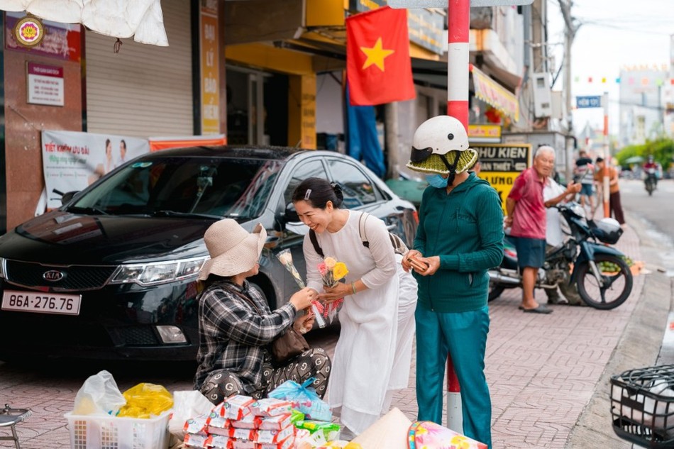 Hơn 1.000 đóa hoa hồng tươi thắm đã được trao tận tay người dân tại các khu chợ, mang đến một nét đẹp bình dị nhưng đầy ý nghĩa giữa lòng phố biển. Chương trình diễn ra dưới sự hướng dẫn của Đại đức Thích Nguyên Thạnh và Đại đức Thích Tịnh An. Từ chiều 1-9, chư Tăng và các Phật tử đã chuẩn bị, gói ghém cẩn thận từng đóa hoa. Mặc dù gặp cơn mưa chiều, không khí tại chùa Quảng Đức vẫn rộn ràng và tràn đầy niềm hân hoan.
