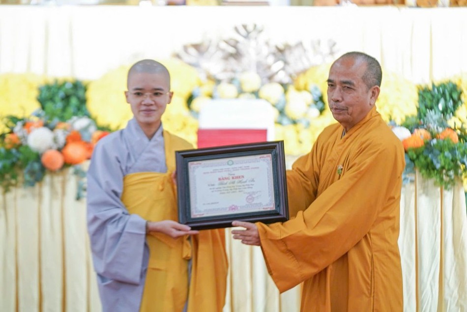 Nhân dịp này, Hội đồng Trị sự, Ban Giáo dục Phật giáo T.Ư và Ban Trị sự tỉnh đã trao Bằng tuyên dương công đức đến tập thể Ban Giám hiệu và các cá nhân có nhiều đóng góp trong công tác giáo dục. Nhà trường cũng đón nhận nhiều lẵng hoa chúc mừng và trao quà khuyến học đến các Tăng Ni sinh có thành tích xuất sắc.