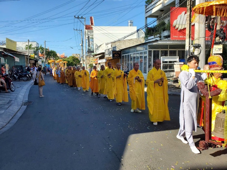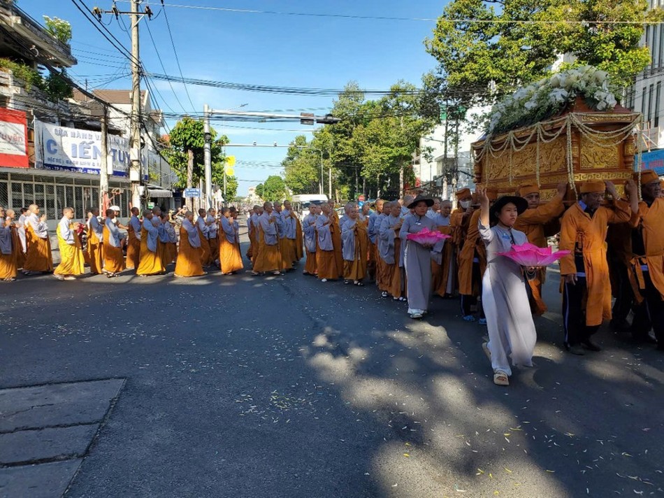 Hòa thượng Thích Huệ Tâm, viện chủ chùa Bảo Sơn (Đồng Nai) đã cử hành lễ phất trần. Thượng tọa Thích Pháp Đăng, trụ trì chùa Viên Quang (Đồng Nai) Sám chủ thực hiện nghi thức cung tống kim quan Ni trưởng thăng thượng giá về đài hỏa táng Hòa Lạc viên làm lễ trà-tỳ.