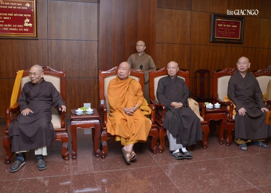 Chư tôn đức đoàn Đại biểu Phật giáo TP.HCM tiếp thân mật lãnh đạo Ban Tôn giáo TP.HCM |
