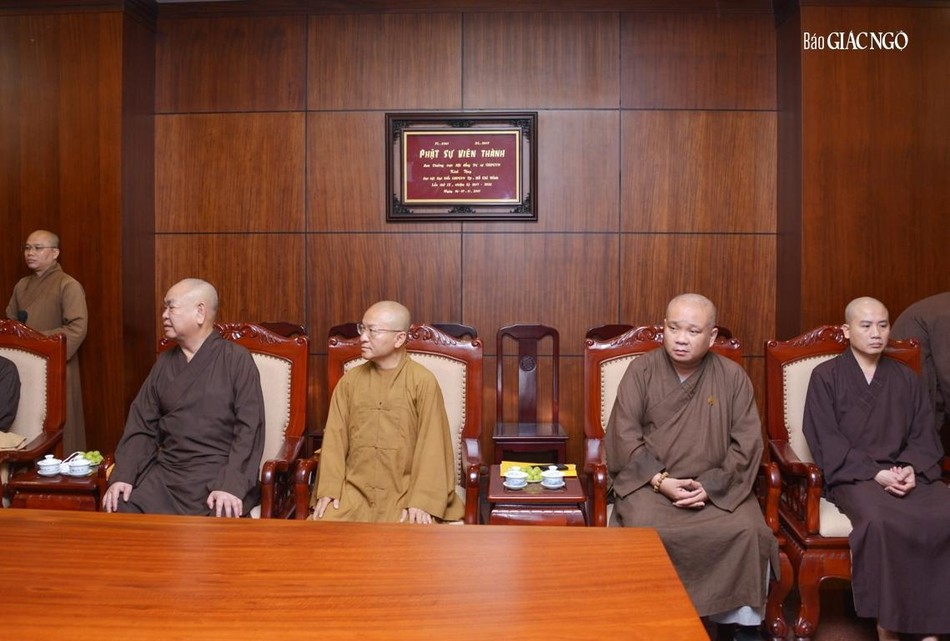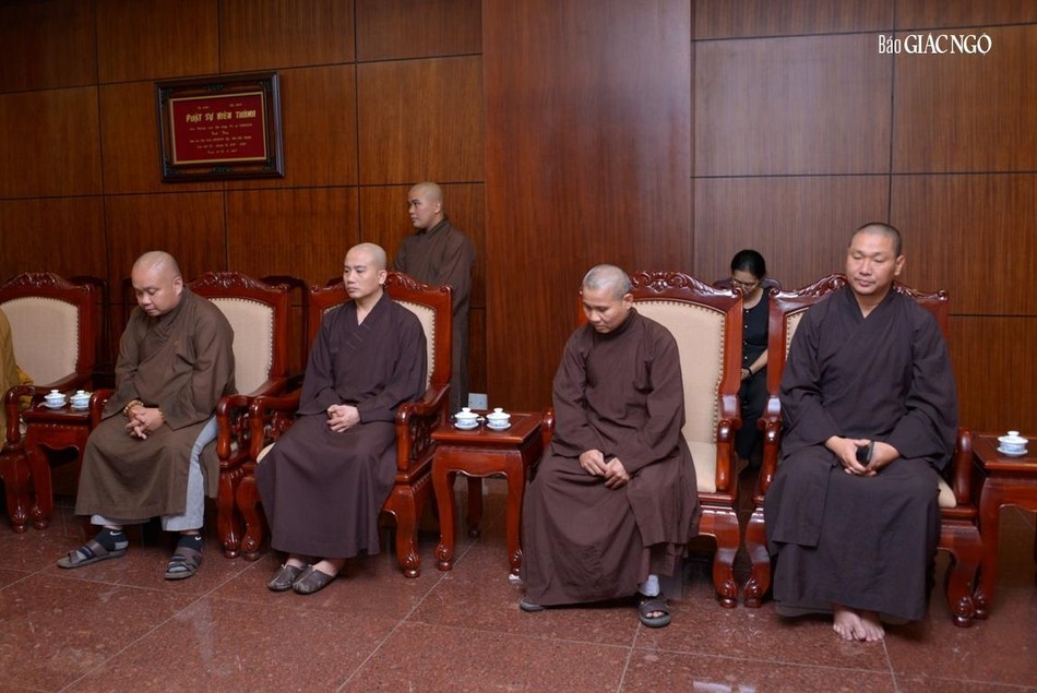 Tiếp đoàn có hiện diện của Hòa thượng Thích Lệ Trang, Trưởng ban Trị sự GHPGVN TP.HCM; chư vị Phó ban Trị sự: Hòa thượng Thích Thiện Đức, Hòa thượng Thích Nhật Hỷ, Thượng tọa Thích Huệ Công, Thượng tọa Thích Thiện Quý (kiêm Chánh Thư ký), Thượng tọa Thích Nhật Từ, Thượng tọa Thích Quang Thạnh; Thượng tọa Thích Trung Nguyện, Phó Thư ký kiêm Chánh Văn phòng Ban Trị sự, Đại đức Thích Trí Đức, Phó Thư ký Ban Trị sự; cùng chư tôn đức Tăng, Ni trong Ban Thường trực, Ban Thư ký, Văn phòng Ban Trị sự, thành viên đoàn Đại biểu Phật giáo TP.HCM tham dự Đại hội Phật giáo toàn quốc lần IX.
