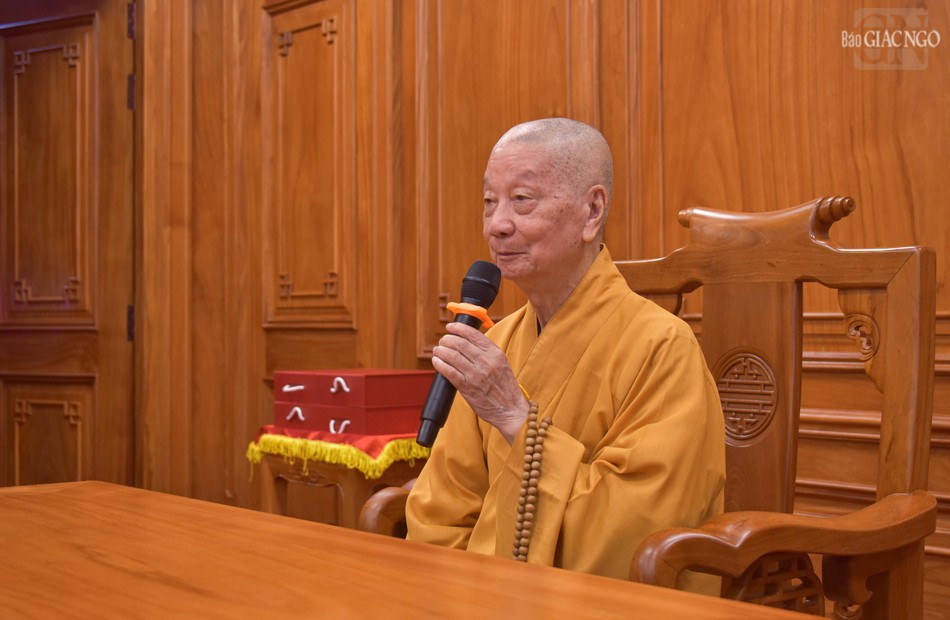 Đáp từ, Đức Pháp chủ đã chào mừng các đoàn về tham dự Đại lễ Vesak Liên Hiệp Quốc 2025. “Mặc dù Đức Phật đã Niết-bàn 2.569 năm nhưng sự có mặt của chúng ta tại đây nói lên tinh thần của Ngài luôn hiện diện trong tâm thức tất cả chúng ta. Đức Phật ra đời trên đất Ấn Độ nhưng trí tuệ của Đức Phật thì miên viễn trong thời gian dài và lan tỏa khắp các quốc gia, vùng lãnh thổ. Đức Phật hóa thân có sinh diệt, nhưng Đức Phật pháp thân thì bất diệt. Vì vậy, vị nào đạt Tứ Thánh quả thì có thể tiếp cận với đời sống Phật.”.