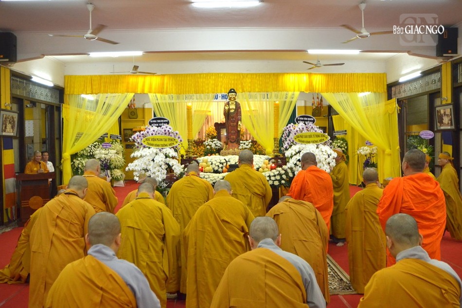 Trước Giác linh đường, thay mặt phái đoàn Ban Thường trực Hội đồng Trị sự, Văn phòng I T.Ư, Ban Giáo dục Phật giáo T.Ư, Ban Kinh tế - Tài chính T.Ư, Ban Phật giáo Quốc tế T.Ư, Học viện Phật giáo VN tại TP.HCM, Trưởng lão Hòa thượng Thích Thanh Nhiễu có lời tri ân nêu bật công đức, đạo nghiệp của Trưởng lão Hòa thượng Phó Pháp chủ tân viên tịch và phân ưu cùng môn đồ pháp quyến.