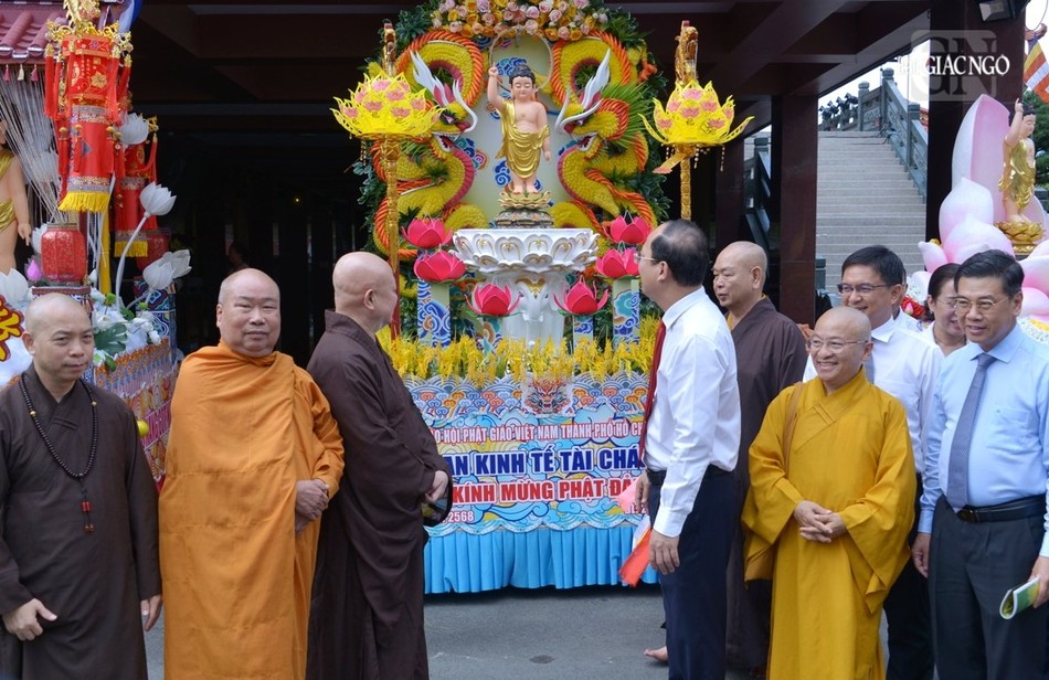 Sáng cùng ngày, Phó Bí thư Thường trực Thành ủy TP.HCM Nguyễn Hồ Hải làm trưởng đoàn và đại diện lãnh đạo các Sở, ban, ngành TP.HCM đã đến Văn phòng II T.Ư - thiền viện Quảng Đức (Q.3, TP.HCM) chúc mừng Đại lễ Phật đản Phật lịch 2568 đến Trưởng lão Hòa thượng Thích Thiện Nhơn, Phó Pháp chủ Hội đồng Chứng minh, Chủ tịch Hội đồng Trị sự, Trưởng lão Hòa thượng Thích Thiện Pháp, Ủy viên Thường trực Hội đồng Chứng minh, Phó Chủ tịch Thường trực Hội đồng Trị sự và chư tôn đức Hội đồng Trị sự GHPGVN.