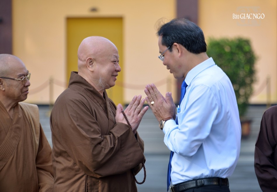 Phó Chủ tịch Thường trực Ủy ban MTTQVN TP.HCM ghi nhận, đánh giá cao, trân trọng cảm ơn các hoạt động Phật sự của GHPGVN TP.HCM. Đặc biệt các hoạt động an sinh xã hội thiết thực trong đại dịch vừa qua, cùng các hoạt động đóng góp Quỹ “Vì người nghèo”, “Vì biển đảo quê hương - Vì tuyến đầu Tổ quốc”, đã nối tiếp truyền thống của Phật giáo Việt Nam đồng hành cùng dân tộc. GHPGVN TP.HCM là thành viên tích cực của Mặt trận, tham gia các cuộc vận động do Mặt trận TP.HCM phát động, chăm lo cho người dân, đóng góp xây dựng khối đoàn kết toàn dân tộc, cho sự phồn vinh thành phố.