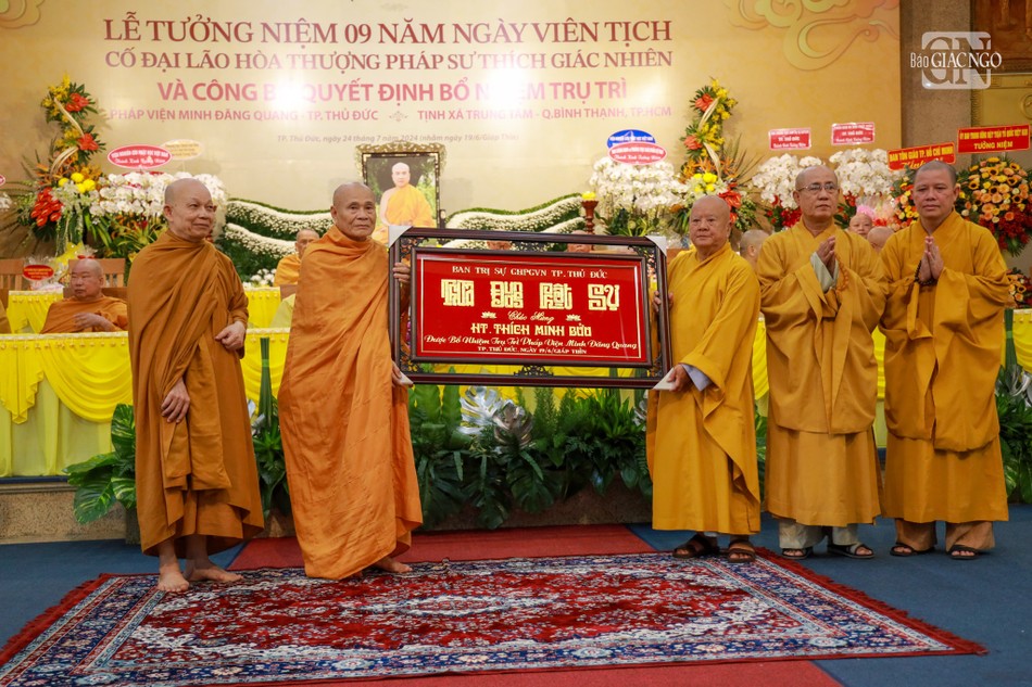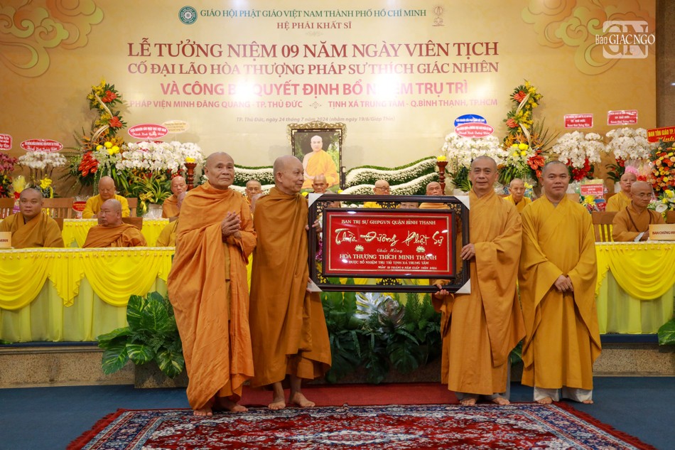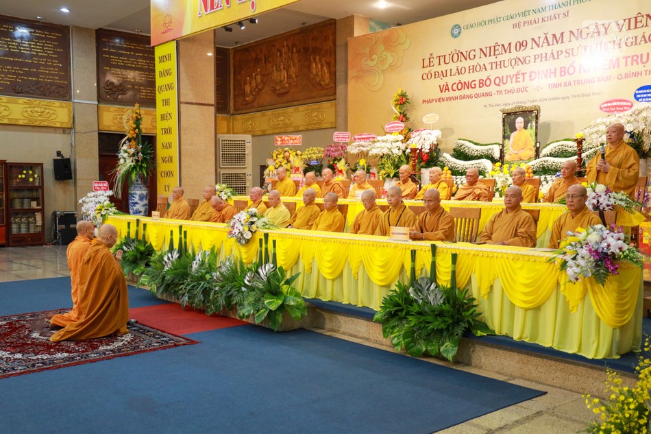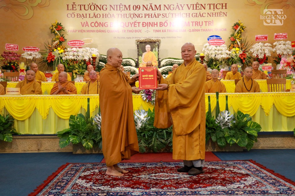 Tại buổi lễ, Thượng tọa Thích Thiện Quý, Phó Trưởng ban kiêm Chánh Thư ký Ban Trị sự GHPGVN TP.HCM đã đọc Quyết định số 111/QĐ-BTS ngày 27-4-2024 về việc bổ nhiệm Hòa thượng Thích Minh Bửu trụ trì pháp viện Minh Đăng Quang (TP.Thủ Đức) và quyết định số 167/QĐ-BTS ngày 30-5-2024 về việc bổ nhiệm Hòa thượng Thích Minh Thành trụ trì tịnh xá Trung Tâm (Q.Bình Thạnh).