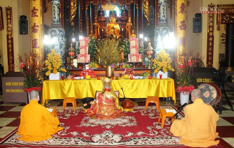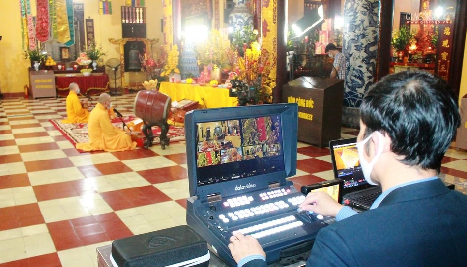 GNO - Sáng 25-2-2021 (tức 14 tháng Giêng Tân Sửu, tại chùa Quán Sứ, Trung ương Giáo hội Phật giáo Việt Nam thực hiện lễ cầu an online để phục vụ nhu cầu tâm linh của người dân.