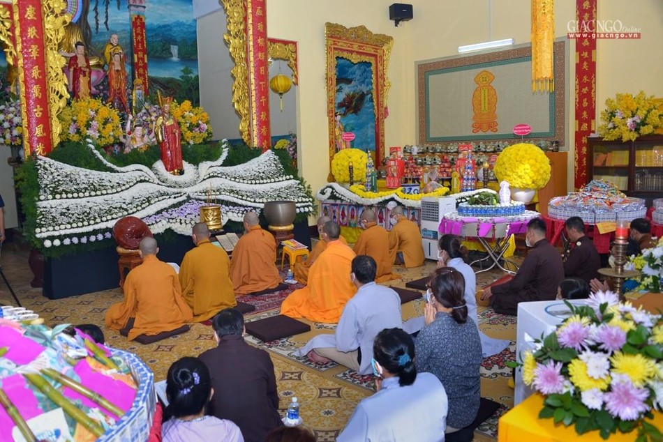 Trưa cùng ngày, chư Tăng đã làm lễ cúng ngọ, cầu siêu và cúng tiến chư hương linh, hồi hướng đến đồng bào tử nạn vì Covid-19. Trong buổi chiều là khóa lễ cầu siêu bạt độ. Đặc biệt, chư tôn đức đã thực hiện lễ trai đàn chẩn tế, mông sơn thí thực cho những vong linh không nơi nương tựa, cầu âm siêu dương thái, dịch bệnh tiêu trừ.