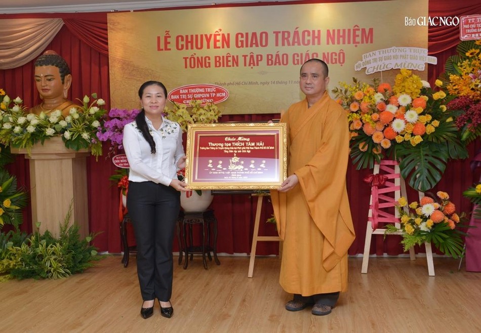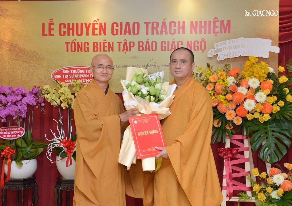 Thay mặt cơ quan chủ quản - Ban Trị sự GHPGVN TP.HCM, Thượng tọa Thích Thiện Quý đã trao quyết định bổ nhiệm Tổng Biên tập báo Giác Ngộ đến Thượng tọa Thích Tâm Hải.