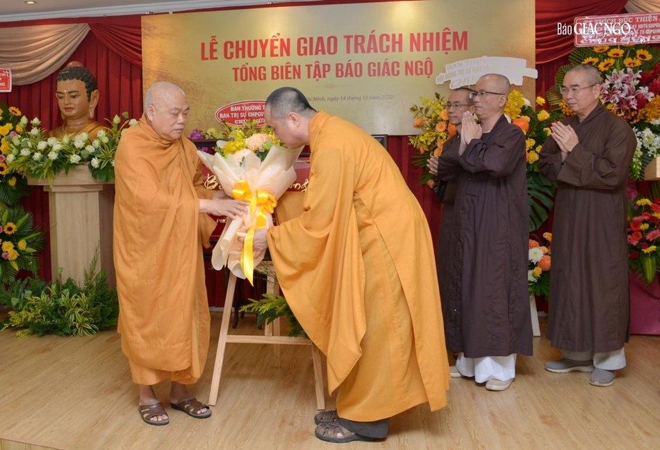 “Từ khi Trưởng lão Hòa thượng được suy tôn Quyền Pháp chủ GHPGVN vào ngày 31-12-2021, tôi được chuyển giao Quyền Tổng Biên tập và cho đến hôm nay được chuyển giao trách nhiệm Tổng Biên tập đến Thượng tọa Thích Tâm Hải, người gắn bó với báo Giác Ngộ trong nhiều vai trò từ phóng viên, biên tập viên, Thư ký tòa soạn, Phó Tổng biên tập, sau khi hoàn thành các thủ tục bổ nhiệm người đứng đầu cơ quan báo chí theo quy định của Bộ Thông tin và truyền thông”, Hòa thượng nhấn mạnh.