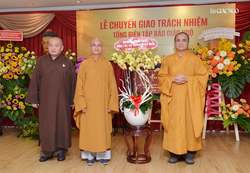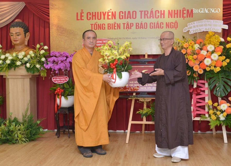 GNO - Sáng nay, 14-11, tại Trụ sở báo Giác Ngộ (Q.3, TP.HCM), Ban Biên tập đã tổ chức lễ chuyển giao trách nhiệm Tổng Biên tập báo Giác Ngộ đến Thượng tọa Thích Tâm Hải với sự tham dự của đại diện Trung ương GHPGVN, Ban Trị sự GHPGVN TP.HCM, các cơ quan chức năng liên hệ.