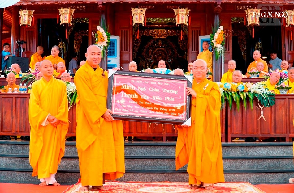 Quang lâm chứng minh có Trưởng lão Hòa thượng Thích Giác Quang, Phó Pháp chủ GHPGVN; cùng chư tôn giáo phẩm Hòa thượng Thích Lưu Hòa, Hòa thượng Quang Nhuận; Hòa thượng Thích Hải Ấn, Hòa thượng Thích Huệ Tâm...; Hòa thượng Thích Huệ Thông, Phó Chủ tịch Hội đồng Trị sự kiêm Trưởng ban Pháp chế T.Ư; Thượng tọa Thích Phước Nguyên, Phó Tổng Thư ký Hội đồng Trị sự kiêm Chánh Văn phòng II T.Ư; Thượng tọa Thích Huệ Khai, Ủy viên Thường trực Hội đồng Trị sự, Trưởng ban Trị sự GHPGVN tỉnh Đồng Nai...