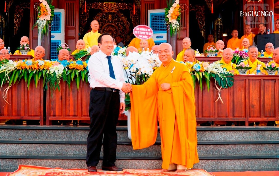 Ban đạo từ, Thượng tọa Thích Huệ Khai thay mặt Ban Thường trực Ban Trị sự GHPGVN tỉnh Đồng Nai tán thán công đức của Thượng tọa Trụ trì và chư Tăng cùng Phật tử thập phương đã vượt lên khó khăn, kiến tạo được ngôi chùa Quảng Đức trang nghiêm. Song song đó, Thượng tọa nhấn mạnh Phật sự quan trọng hơn sau việc kiến tạo cơ sở vật chất là đào tạo con người, giáo dục Tăng chúng để tiếp nối sứ mệnh người thầy tâm linh cho tín đồ lâu dài và mong Thượng tọa Thích Minh Thanh quan tâm về việc này.