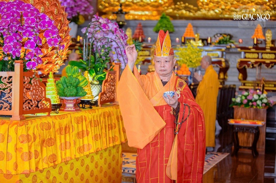 Trước đó, Ban Nghi lễ đã thỉnh chư anh linh tại Đài tưởng niệm Liệt sĩ năm Mậu Thân (xã Nhựt Tân, H.Bình Chánh) về an vị tại đàn tràng. Hòa thượng Thích Lệ Trang, Phó Chủ tịch Hội đồng Trị sự, Trưởng ban Nghi lễ T.Ư, Trưởng ban Trị sự GHPGVN TP.HCM sám chủ đàn tràng cùng chư tôn đức đã cử hành nghi thức niệm đàn sái tịnh, thượng đại tràng phan...