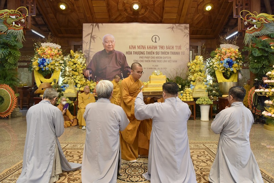 GNO - Sáng nay, 30-12 (mùng 8 tháng Chạp), lễ khánh thọ bách tuế Trưởng lão Hòa thượng - Thiền sư Thích Thanh Từ, Phó Pháp chủ Hội đồng Chứng minh GHPGVN, Tông chủ Thiền phái Trúc Lâm Việt Nam đã trọng thể diễn ra tại tổ đình thiền viện Thường Chiếu (huyện Long Thành, Đồng Nai).