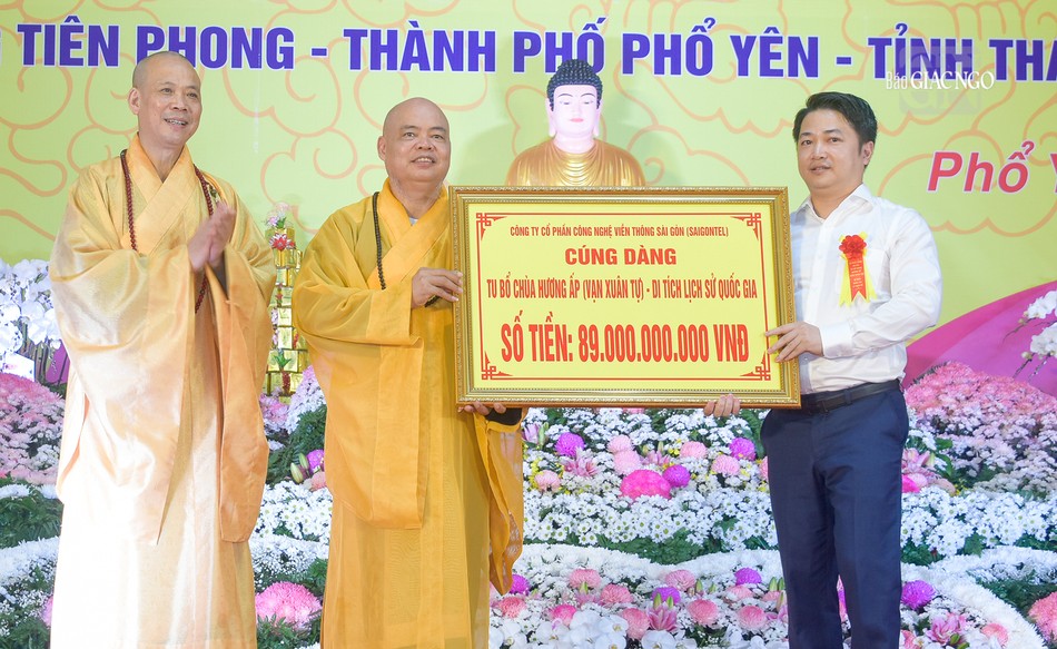 Phát biểu khai mạc, Thượng tọa Thích Thanh Phong, Phó Chủ tịch Hội đồng Trị sự, Trưởng ban Kinh tế - Tài chính T.Ư, trụ trì chùa Hương Ấp (Vạn Xuân tự) khái quát về lịch sử hình thành chùa Hương Ấp - Di tích Lịch sử quốc gia gắn liền với tuổi thơ vua Lý Nam Đế (Lý Bí); cũng như các giá trị lịch sử và tâm linh của ngôi chùa này trong dòng chảy lịch sử dân tộc Việt Nam.