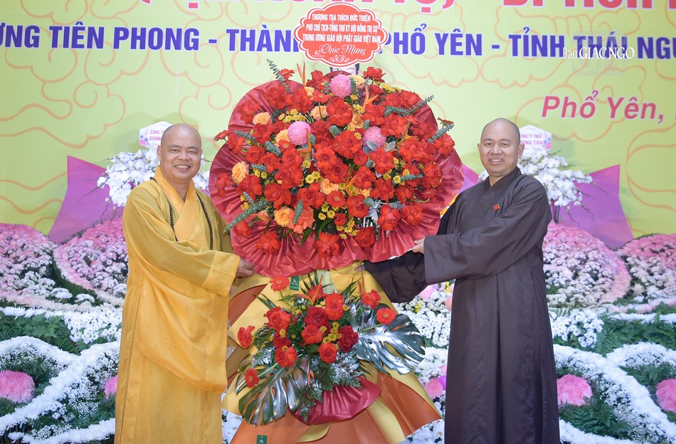 Thượng tọa Thích Nguyên Thành, Ủy viên Thường trực Hội đồng Trị sự, Trưởng ban Trị sự GHPGVN tỉnh Thái Nguyên thay mặt Ban Tổ chức phát biểu cảm tạ chư tôn đức giáo phẩm lãnh đạo GHPGVN, Nhà nước, Chính phủ, các cơ quan T.Ư và tỉnh Thái Nguyên, cùng Tăng Ni, Phật tử, các doanh nghiệp, mạnh thường quân đã đến tham dự và hết lòng ủng hộ buổi lễ hôm nay.