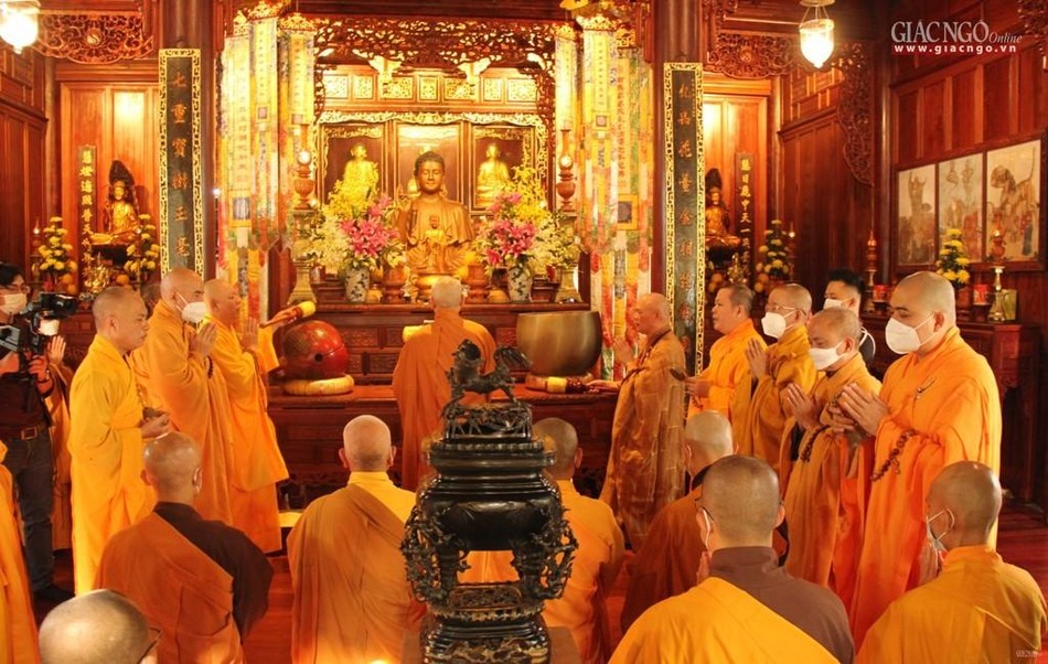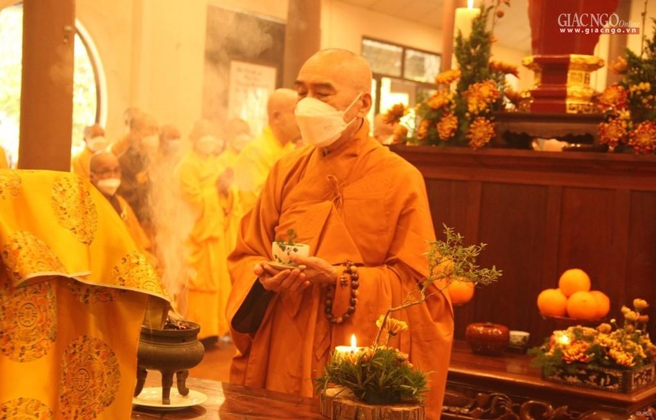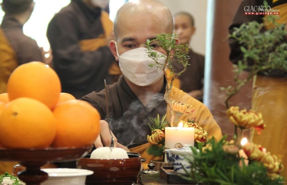 Cũng trong sáng hôm nay, chư vị tôn túc đã cử hành các nghi thức truyền thống, như lễ khai kinh bạch Phật, lễ thọ tâm tang và cung tiến Giác linh.