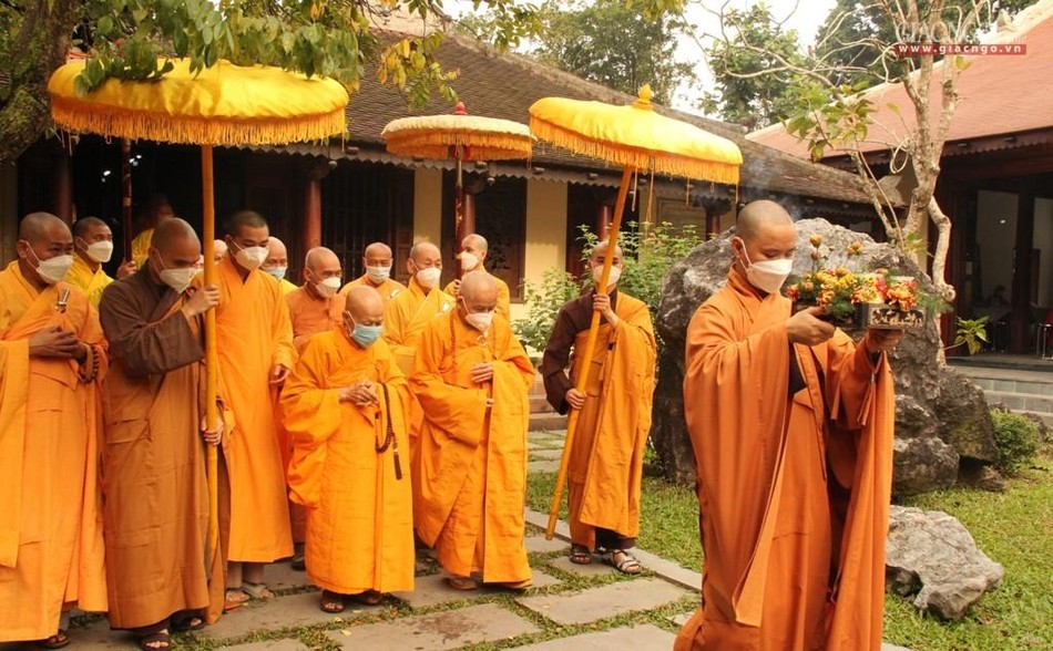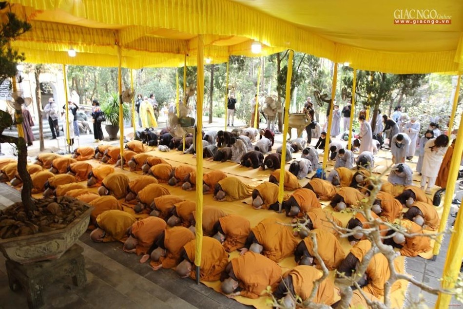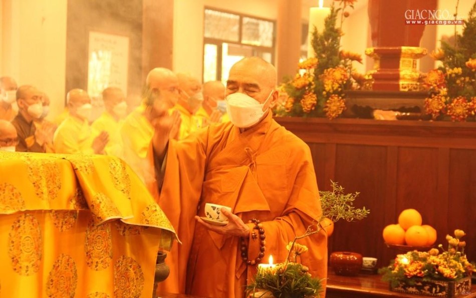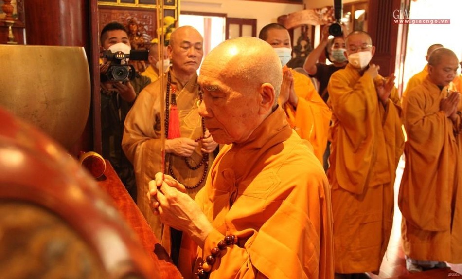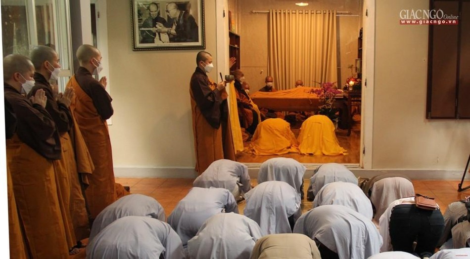 Sau khi đại diện các pháp tử của Thiền sư tác bạch trước đại Tăng, toàn thể chư tôn đức hiện diện đã nhất tâm niệm Phật và quang lâm thiền đường Trăng Rằm trong khuôn viên chùa Từ Hiếu trang nghiêm cử hành nghi lễ tâm linh truyền thống của Phật giáo cố đô.