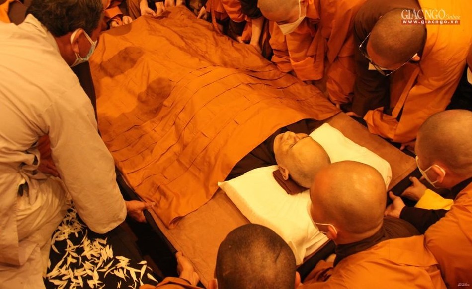 Đại chúng đã cung thỉnh Hòa thượng Thích Quang Nhuận (chùa Hiếu Quang) làm Duy na, Hòa thượng Thích Giác Đạo (tổ đình Kim Tiên) làm Duyệt chúng. Đại chúng đã đồng thanh cử tán Dương chi, tụng Đại bi - Thập chú trong nghi thức trị quan.