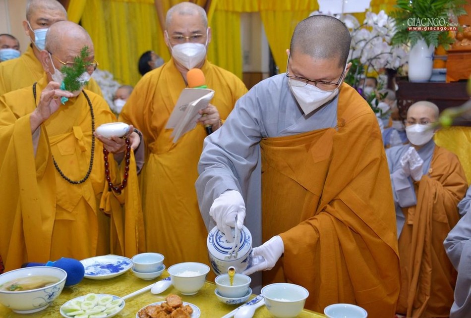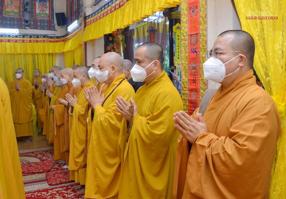 Sau lễ nhập kim quan, Hòa thượng Thích Huệ Minh và chư tôn đức Ban Trị sự GHPGVN quận Phú Nhuận thực hiện nghi thức thiền môn cũng như hướng dẫn môn đồ pháp quyến thọ tang báo đáp ân hóa đạo của tôn sự.