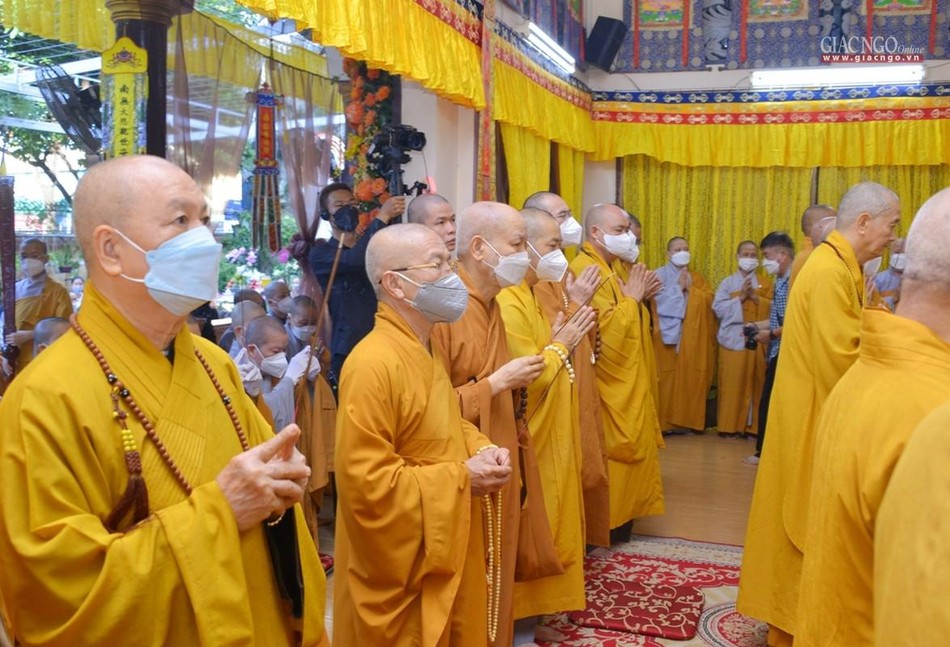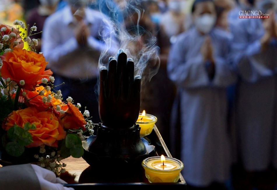 Trong không gian lắng đọng của những ngày đầu tuần của mùa Vu lan - Báo hiếu, chư tôn đức đã niệm hương, lễ Tam bảo và đồng tụng Đại bi thần chú gia trì, niệm danh hiệu Phật A Di Đà phóng quang tiếp dẫn.